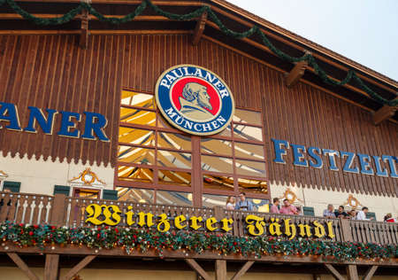 Munich, Germany - September 24, 2016: Facade and balcony of the Winzerer Faehndl beer tent