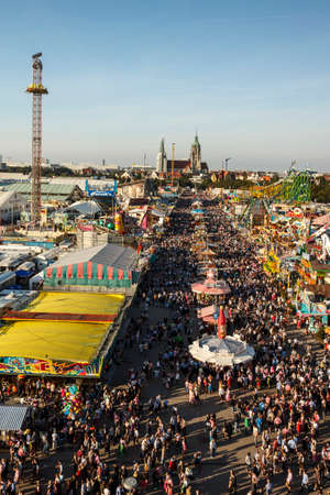 Munich, Germany - September 8: View over the Oktoberfest in Munich. The Oktoberfest is the biggest beer festival of the world.