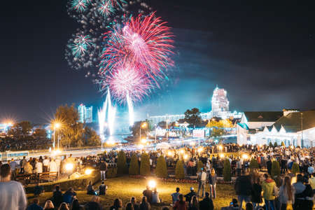 Colorful fireworks and crowd celebrating the New Year