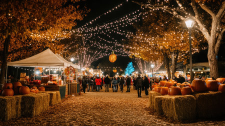 autumn-themed street fair with pumpkins, hay bales, and warm lighting --chaos 30 --ar 16:9 --v 6.1 Job ID: 1f5ce8d2-df27-4f52-b077-18eec3a0ab0e