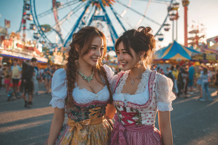 Unidentified people in traditional Bavarian clothes at the oktoberfest in Munich, Germany.