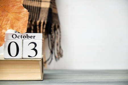 third day of autumn month calendar october with copy space.