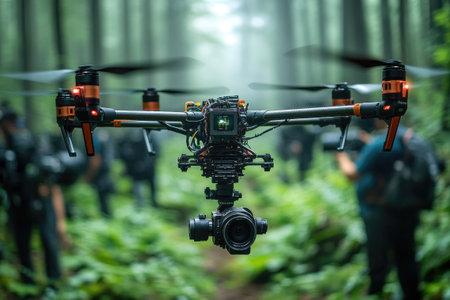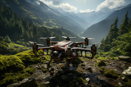 Large drone equipped with specialized sensors. Collecting environmental data and assess the health of remote ecosystem. The drone allows for more efficient data collection and analysis. Generative AI illustrator