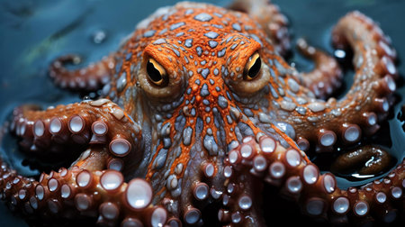 Close-Up Portrait Majestic Octopus Intricate Details, Vibrant Orange Tentacles, Dark Background