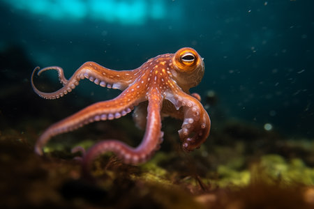 Detailed view of octopus in ocean habitat, showcasing diverse marine life and sea creatures
