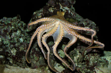 Octopus in the aquarium. Underwater photo of sea animal.
