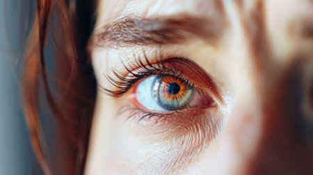This striking close-up image showcases the intricate details of human eye anatomy, highlighting the iris, sclera, and surrounding structures. Perfect for educational and medical purposes.