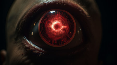 a close-up shot of a head with a red bulb at the front and center, resembling a photorealistic eye. this 2d game art features an eerily realistic design in 8k resolution, creating otherworldly scenes. the eye-catching composition showcases the intel core technology used to bring this captivating image to life. ai generated