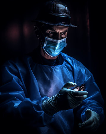 Surgeon holding a scalpel in his hand in the dark ai generated