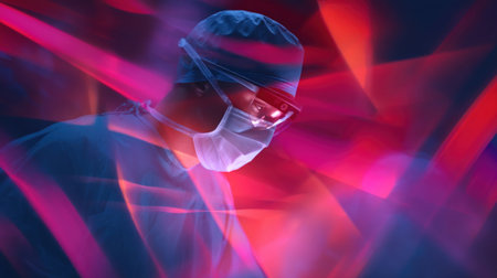 A healthcare professional focuses intently on surgical procedure using advanced equipment and tools