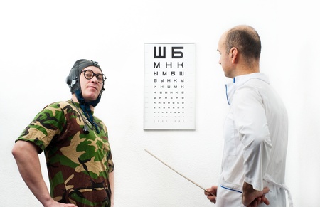 Doctor ophthalmologist and patient funny