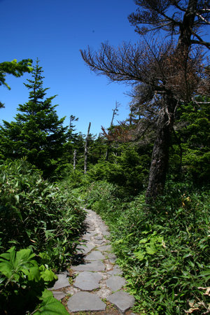 Walking trail on Hakkoda Mountains in Aomori, Japan. Hakkoda is one of the best fall destinations in the Tohoku region.