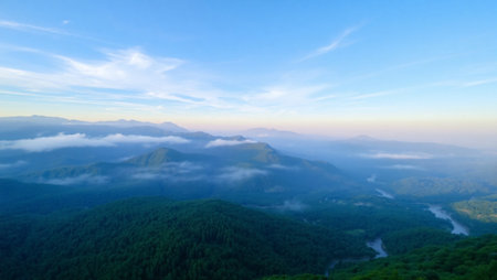 Aerial view of mountains and fog in the morning at Doi Inthanon National Park, Chiang Mai, Thailand