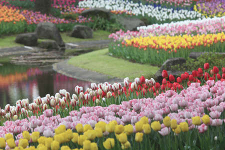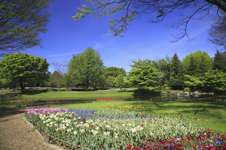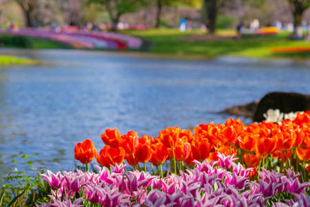 Tulip garden at Showa Kinen Koen(Showa Memorial Park),Tachikawa,Tokyo,Japan in spring.