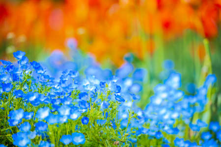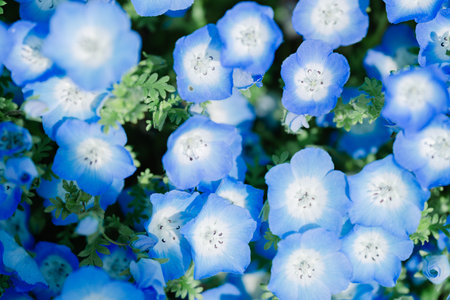 Nemophila blooming in the park in spring