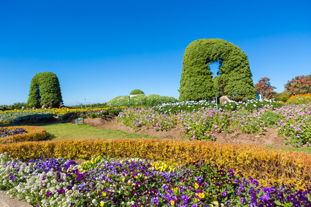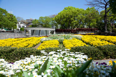the flower beds in formal garden at spring