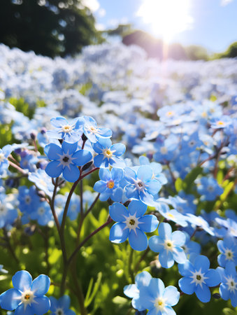Beautiful forget-me-not flowers in the garden. Spring background