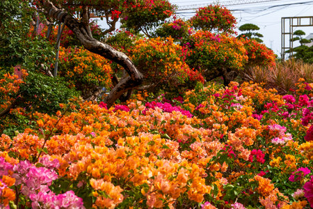 Beautiful blooming bougainvillea bougainvillea flowers of various colors in the garden