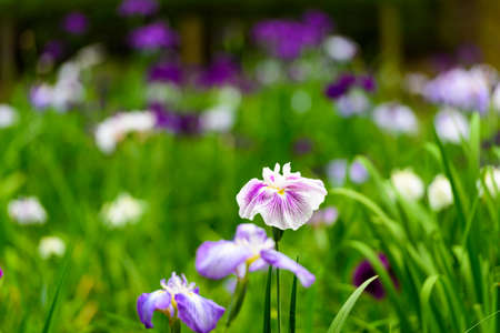 Beautiful flowers and irises blooming in early summer