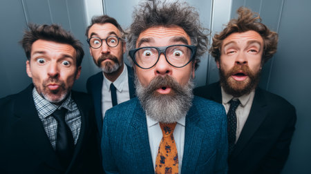 Portraits of group of multiethnic young men isolated on multicolored background. Concept of emotions, facial expressions. Collage