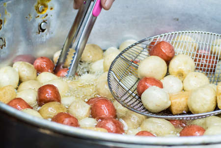 fishballs, meatball and sausage fried