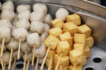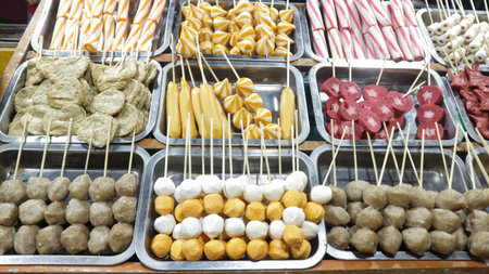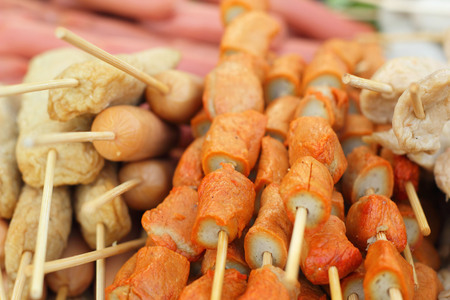 Meatballs and sausages steamed in the market