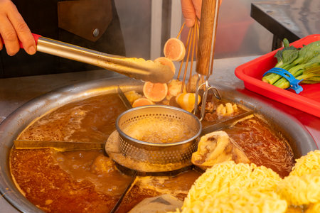 Taiwanese snacks of spicy pork blood hot pot in the night marketplace