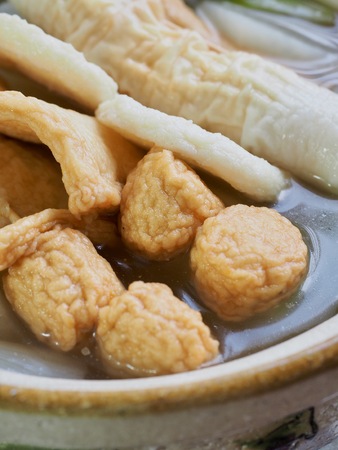 Japanese Fish cake stew decorated on the bright table.