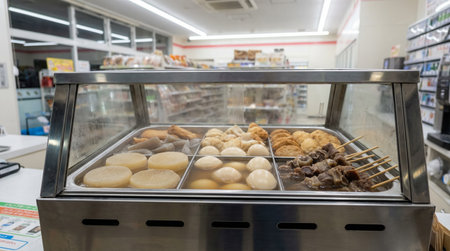 Oden - a Japanese winter food served in a bowl from the convenience store in Japan. Close up shot.