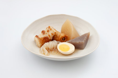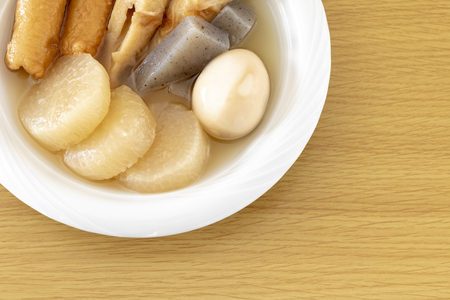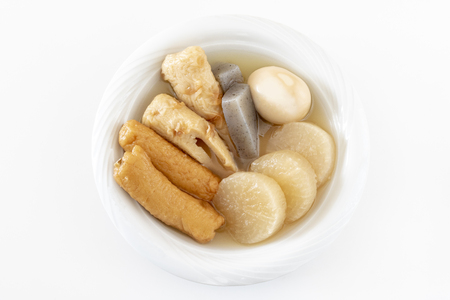 Japanese food, simmered fish ball and radish with kombu for winter Oden food ingredient