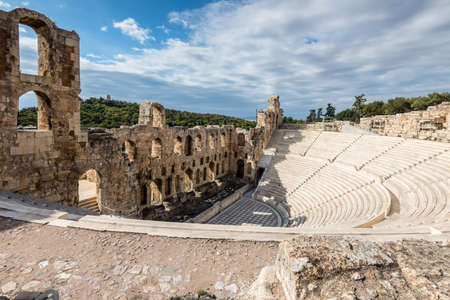 Overview of the amphitheater called Odeon of Herodes Atticus (Herodeion or Herodion ) in the Acropolis of Athens, Greece