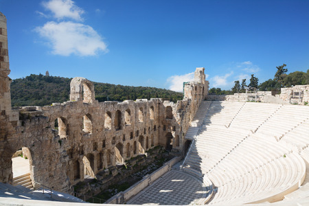 Ancient herodes atticus theater amphitheater of Acropolis of Athens, landmark of Greece