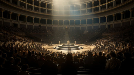 Greek amphitheater at bustling metropolis heart urban life encircles