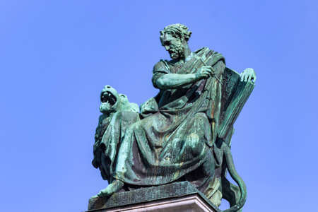 St. Petersburg, Russia - March, 06, 2021: Bronze sculptures on the roof of St. Isaac's Cathedral in St. Petersburg.