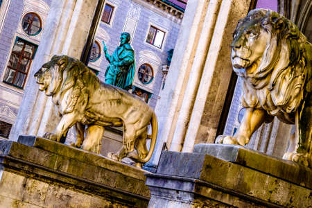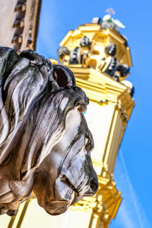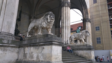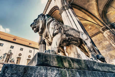 Lion Statue in front of Feldherrnhalle at the Odeonsplatz, Munich, Germany