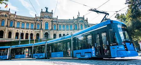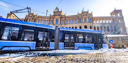 Munich, Germany - January 20: typcial tramway in munich down town - maximilianstrasse on January 20, 2020