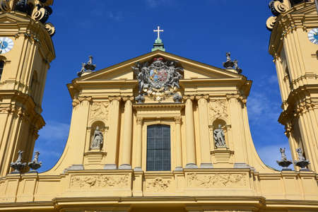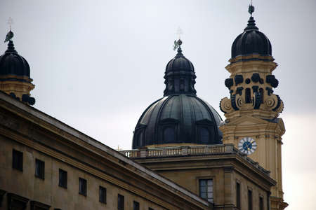 Clock towers at the Church of St. Cajetan in Munich. Theatinerkirche