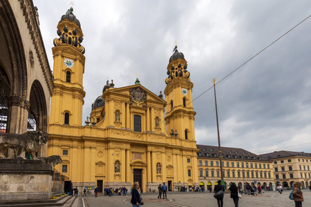 Munich, Germany - May 09, 2024: Baroque Theatine Church in Munich's Odeonsplatz