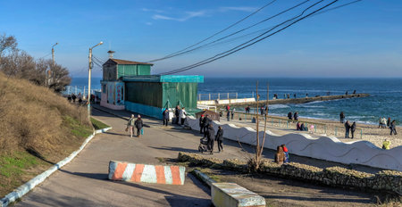 Odessa, Ukraine 05/27/2022. Sunny spring day on the Embankment of Lanzheron beach in Odessa during the war in Ukraine