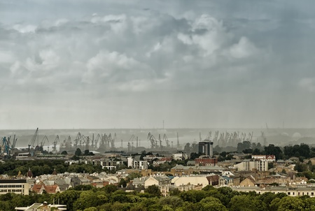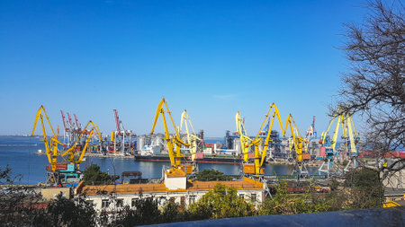 Odessa, Ukraine. September 3, 2017; View of the seaport from harbor cranes.