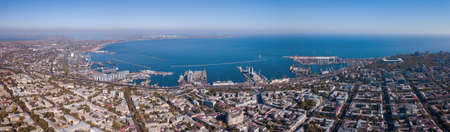 Aerial view panorama of Odessa with port and sea, Ukraine