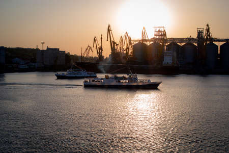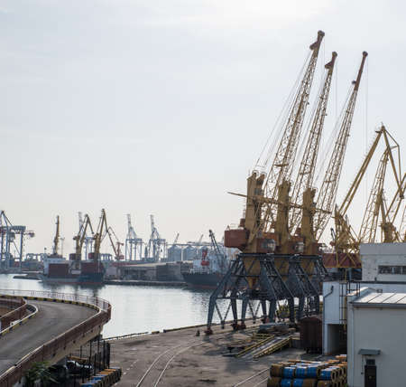 Container terminal and shipyard in Odessa, Ukraine. Industrial landscape