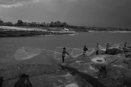 Fishing at Sam Phan Bok (Grand Canyon), Ubon Ratchathani, Thailand