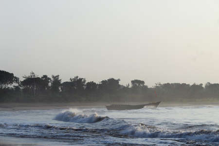 Fishermen cathing fish in early morning time after whole night fight coming shore back to home from the oumb of ocean everyday life style and fight of life for the livings.Digha India. Asia. 2018.
