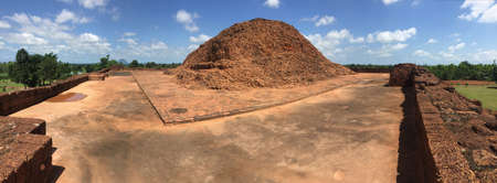 Panorama, Pile of the brick uppermost terrace of stupa on the square base of Khao Klang Nok, influence of Draravati culture, 8th-9th century A.D. in Petchaboon, Thailand.