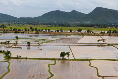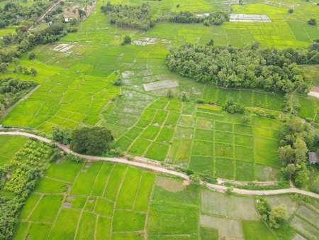 Field image, Rice fields High angle shot From drones in Thailand