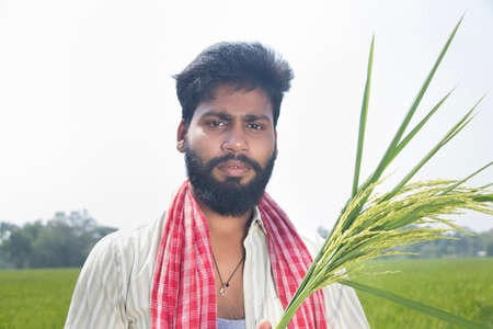 Indian Young Farmer holding ear of rice