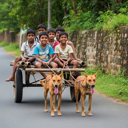 A group of children with their dog on the road in Burdwan.