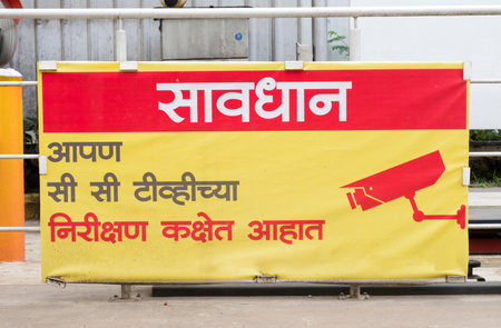 Flex banner displaying notice warning customers of cctv surveillance in the hindi language