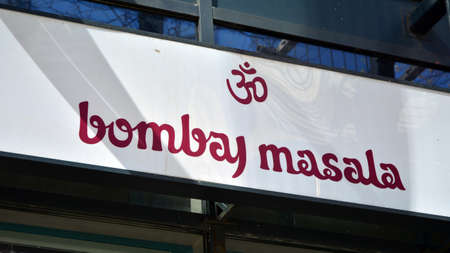 Warsaw, Poland. 8 April 2020. Sign Bombay Masala. Company signboard Bombay Masala.